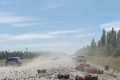 Un grave incidente vial se registró este mediodía sobre la Ruta Nacional 250, a la altura del kilómetro 274, cuando una camioneta Toyota Hilux cargada con jaulas de peras perdió su carga al intentar i...