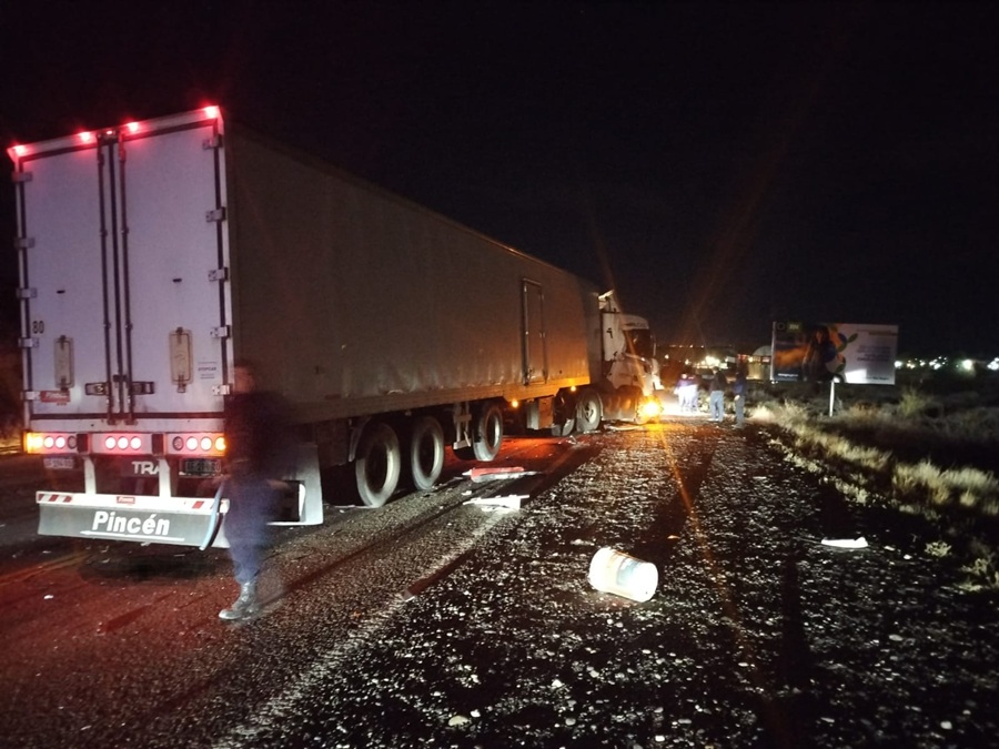 Según informó la Policía, se trató de una colisión por alcance entre un camión Scania con semirremolque, que transportaba muebles desde Buenos Aires con destino a Trelew, y un tractor Iveco con semirremolque cargado con arena destinada a pozos petroleros, que se dirigía a Neuquén.
