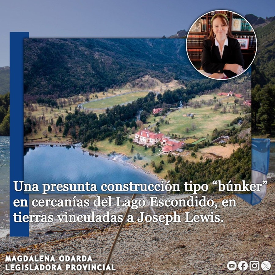 El pedido de informes también incluye una presunta construcción tipo “búnker” en cercanías del Lago Escondido, en tierras vinculadas al empresario británico Joseph Lewis, un nombre recurrente cada vez que se discuten límites difusos entre intereses privados, poder económico y territorio nacional. A esto se suma la consulta sobre la posible presencia de aeronaves o funcionarios extranjeros durante el mes de enero, así como la apertura de un camino costero que, según Odarda, se habría realizado sin respetar la línea de ribera ni el histórico camino de sirga.