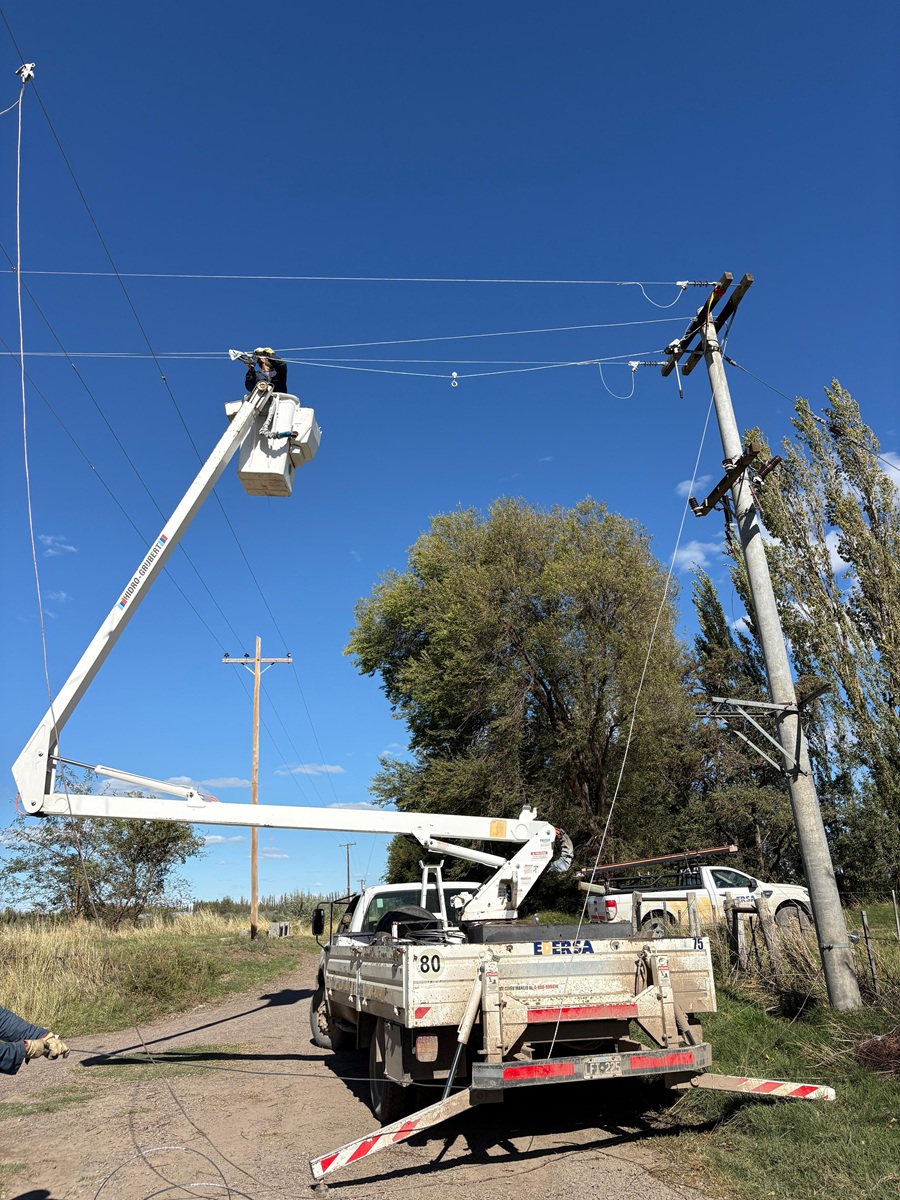 La distribuidora eléctrica EdERSA puso en marcha un plan de trabajo urgente en la zona este de Chimpay, con el objetivo de restablecer la normalidad del servicio tras los cortes registrados en los últimos días. Las tareas, que incluyen el recambio y modernización de artefactos, labores de mantenimiento y poda preventiva, se deben a los daños provocados por el último temporal que golpeó con dureza al Valle Medio rionegrino.