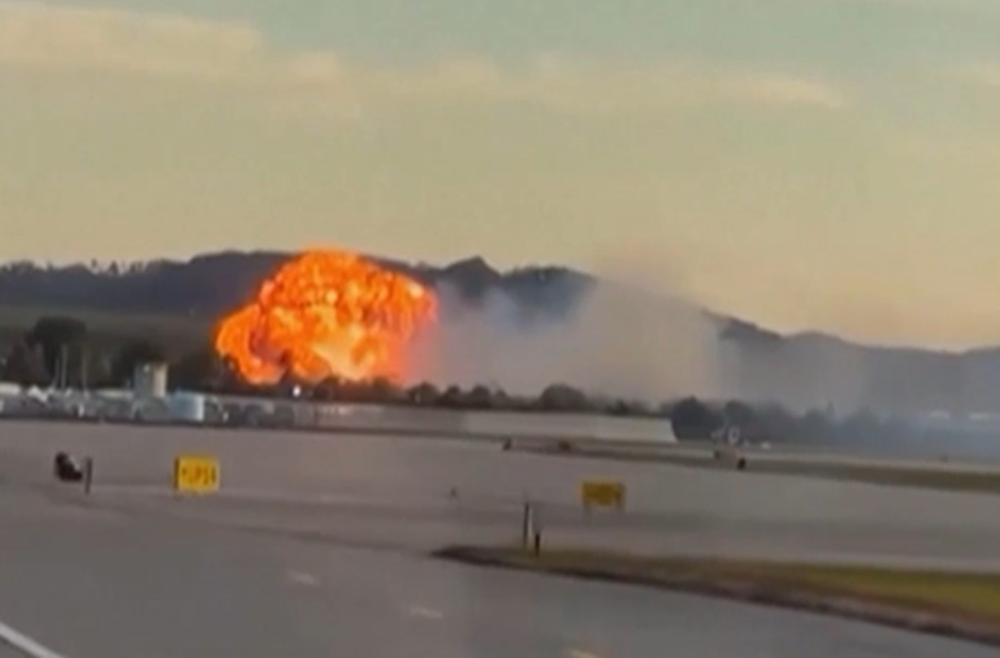 En un video se puede ver cómo el avión, que acaba de despegar, vuela a baja altura mientras arde, poco antes de estrellarse y explotar, desatando una gran columna de fuego.