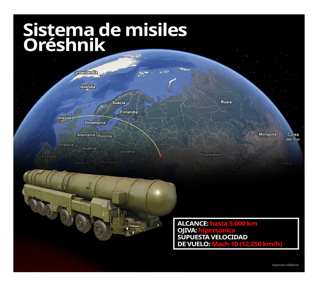 A las pocas horas, el presidente ruso, Vladímir Putin, explicó que se trató del nuevo misil balístico Oréshnik.